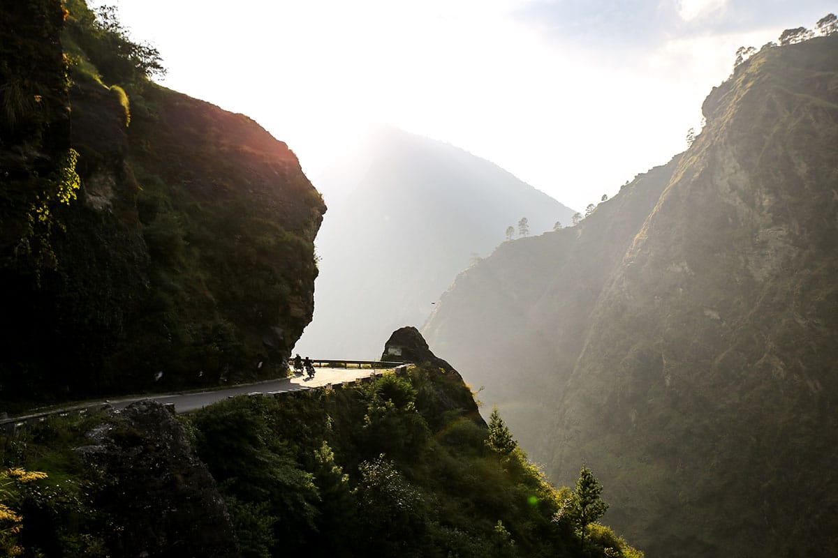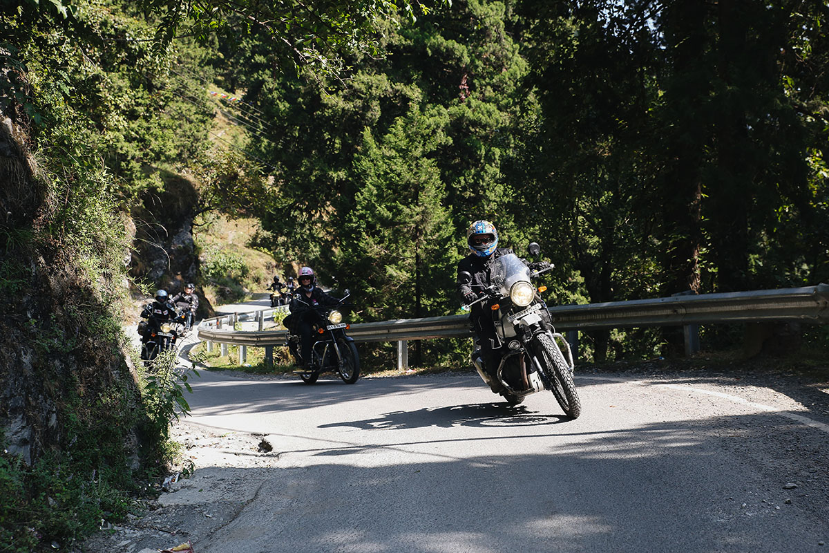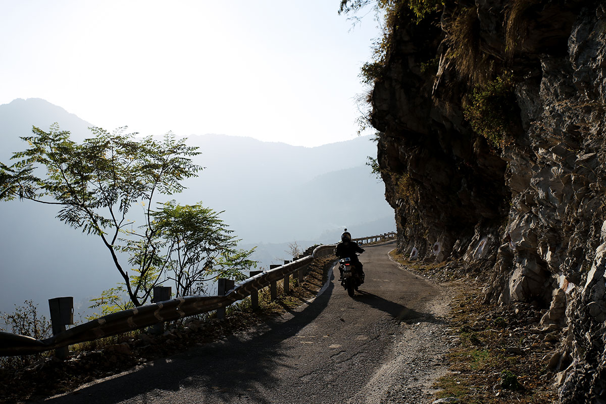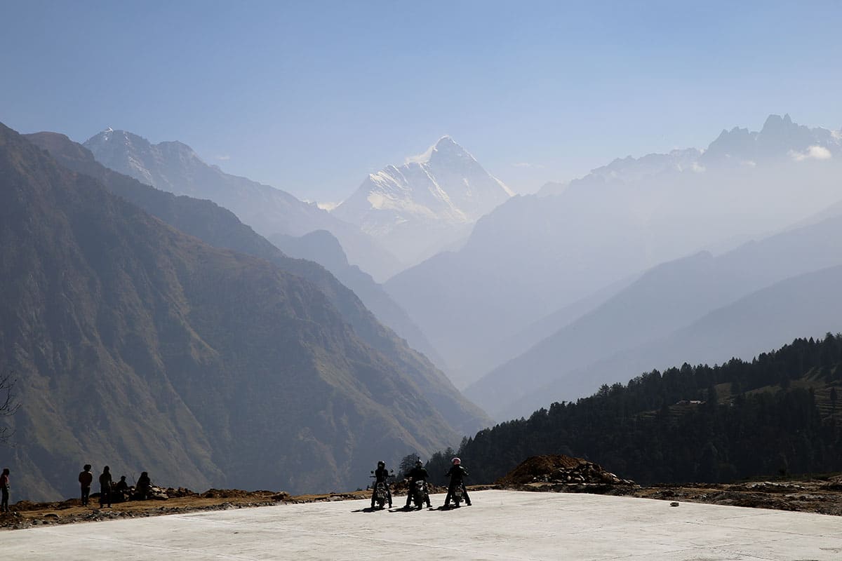 Uttarakhand ligger i Himalaya, högt upp mot Nepal och Tibet. Här är det sol och värme och en fantastisk utsikt mot snöklädda bergstoppar på 7-8000 m. Det är en njutning att köra motorcykel här. Från sadeln ser vi vita bergstoppar, gröna trappkullar, brusande floder och en enorm blomsterprakt. Från frisk bergsluft över bergstopparna kör vi genom små, mysiga landsbygder där det luktar mat, kogödsel och rökelse. Vinkande skolbarn möter oss på flera platser där vi kör och de ler från öra till öra. Vänligheten och värmen från indier känner vi av från vart vi än är.