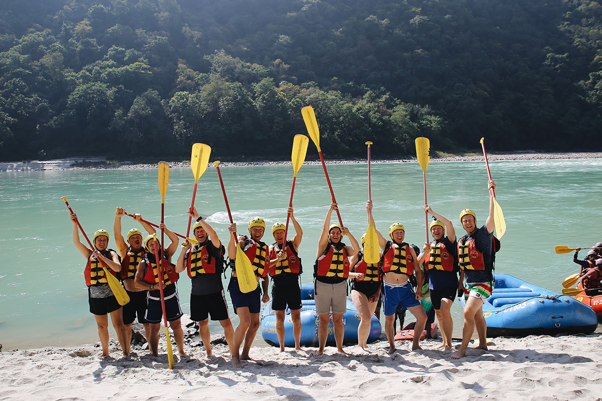 Rafting, sightseeing i Rishikesh och buss till Delhi